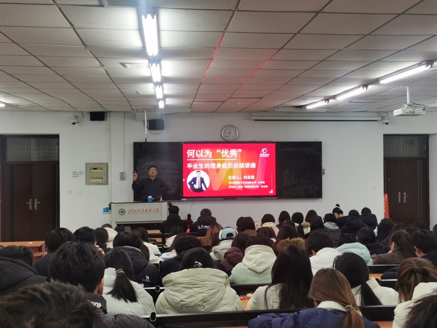 活动特邀2012级优秀校友刘忠胜学长担任分享嘉宾。刘忠胜学长在校期间表现优异,曾荣获国家一等奖学金、河北省省级三好学生等多项荣誉,毕业后短短几年又从优秀员工转身成为创业者。此次重返母校,刘忠胜学长以“何以为优秀”为题,结合自身在校学习、初入职场与创业探索等不同阶段的经历,分享了从校园到创业的“优秀”进阶之路,为学弟学妹带来了一场内容丰富、充满启发性的主题报告。
