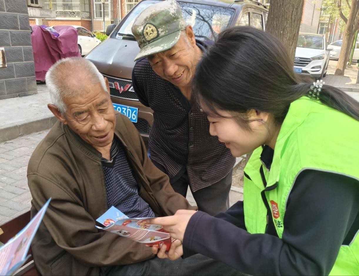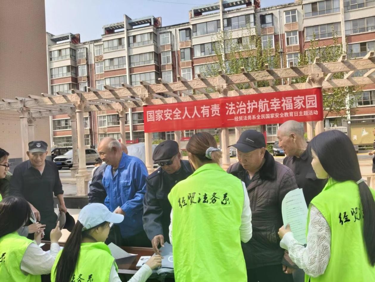 4月12日,经贸法务系组织师生志愿者走进石家庄市新华区杜北小区,开展国家安全教育进社区普法宣传活动,将法治服务送到群众身边。
